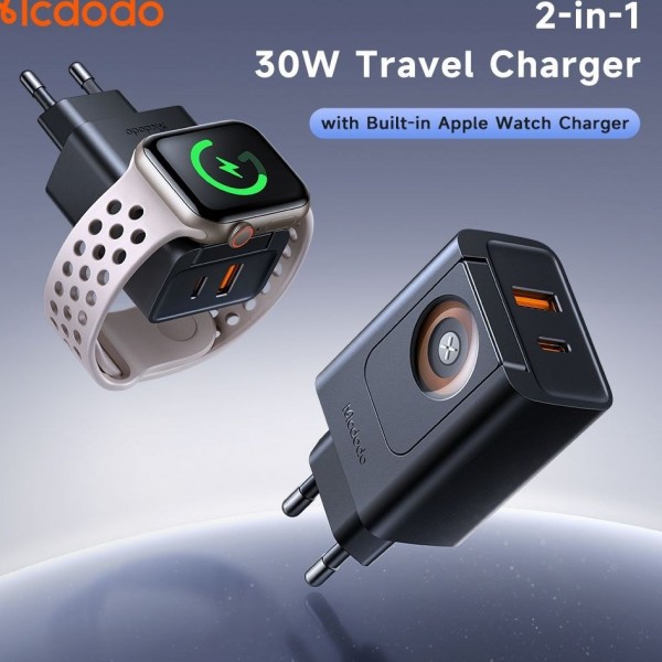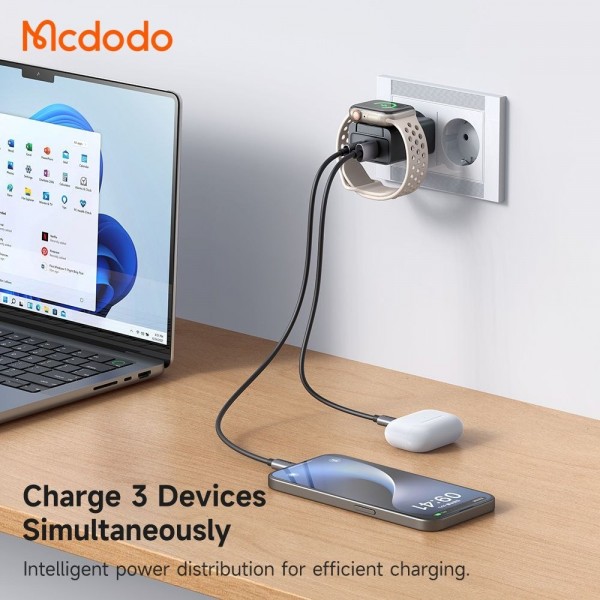 دارای دوشاخه پریز اروپایی با سازگاری کامل با پریزهای ایران بدون نیاز به مبدل پریز دارای کابل همراه 60 سانتی USB-A به POGO PIN جهت اتصال به شارژر اپل واچ دارای قابلیت جداشدن شارژ وایرلس اپل واچ و استفاده به صورت جداگانه